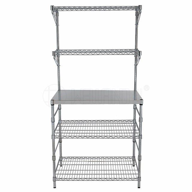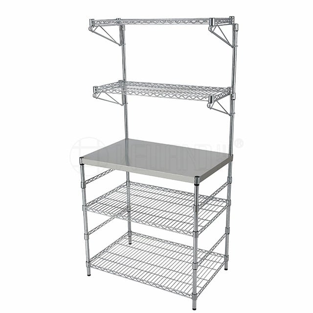 Custom Stainless Steel Shelving with 2 Storge Wire Shelves,Takeaway Packaging Shelving in Commercial Kitchen